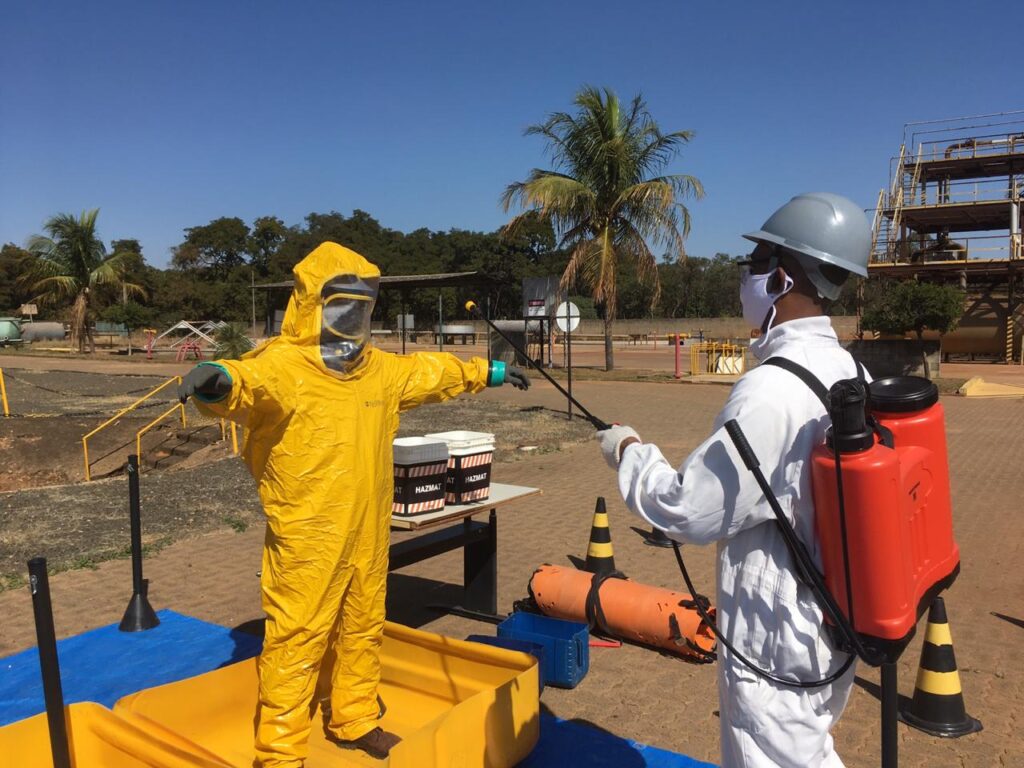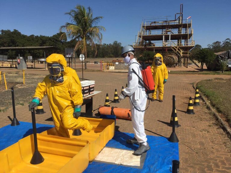 Durante a formação, o aluno terá contato direto com: ✅ Equipamentos de proteção química e respiratória ✅ Exercícios em casa de fumaça e espaço confinado ✅ Técnicas de confinamento e contenção de vazamentos ✅ Simulações de emergências em escala real